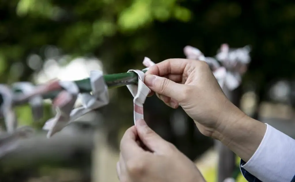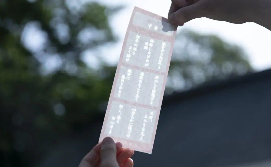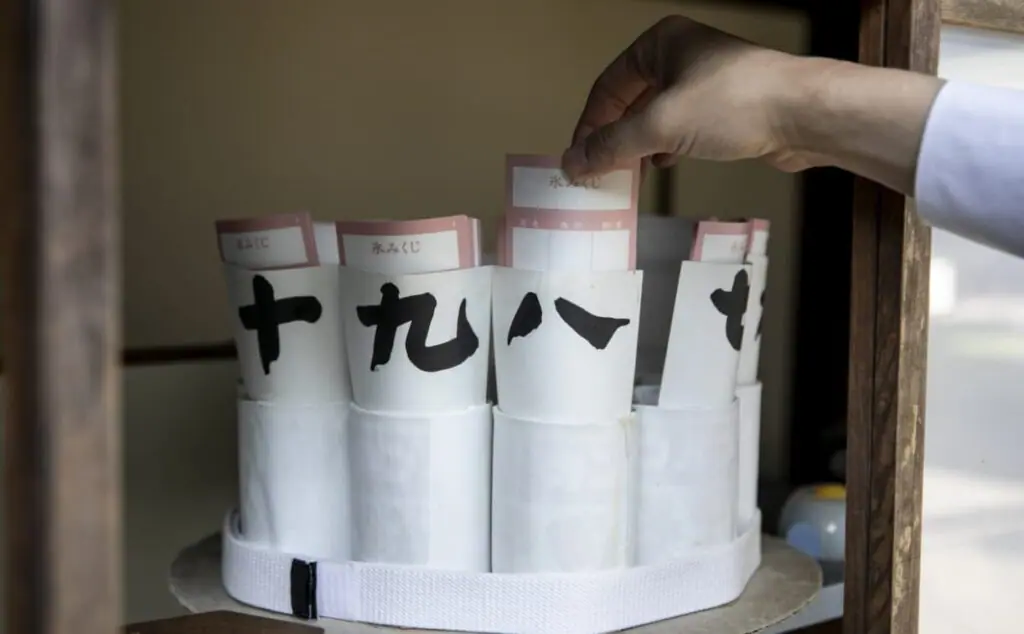 Please draw out the number of the fortune at the awarding office.Please take an fortune with your number.If you put the fortune on the ice, the characters will appear.The place to tie the omikuji is on the west side of the gate.There is no problem even if you take it home.